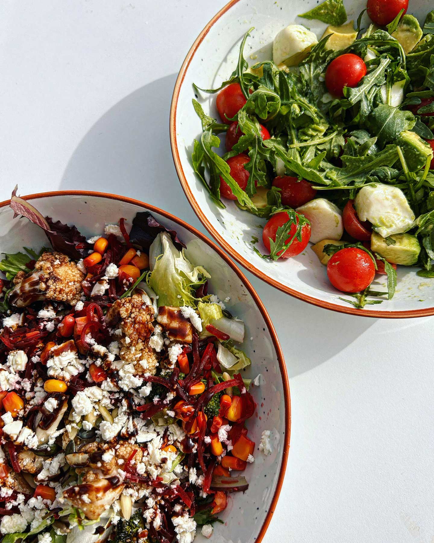 Esmorzars dolços i salats com pancakes amb fruites i mel, granola amb iogurt grec, torrades amb alvocat o hummus, ous remenats o truita amb torrada de massa mare. Si tens més gana, tria entre les nostres hamburgueses amb moniato fregit, bowls d’arròs amb verdures rostides i falafel, o amanides fresques i plenes de sabor.